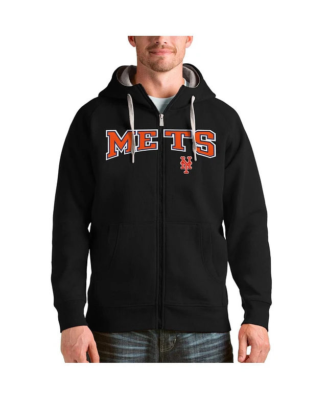Antigua Men's Black New York Mets Team Logo Victory Full-Zip Hoodie