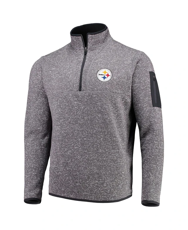 Antigua Men's Heather Black Pittsburgh Steelers Fortune Quarter-Zip Pullover Jacket