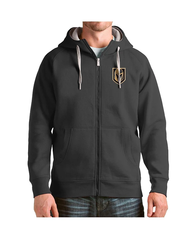 Antigua Men's Charcoal Vegas Golden Knights Logo Victory Full-Zip Hoodie