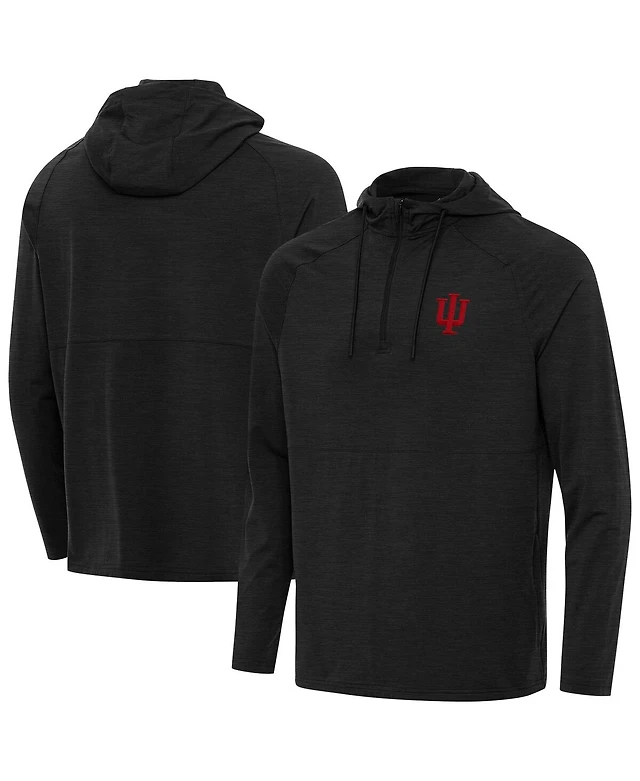 Antigua Men's Heather Black Indiana Hoosiers Spikes Quarter-Zip Hoodie