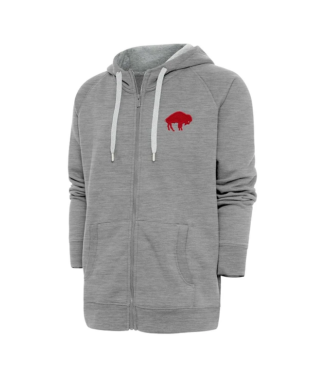 Antigua Men's Heather Gray Buffalo Bills Throwback Logo Victory Full-Zip Hoodie