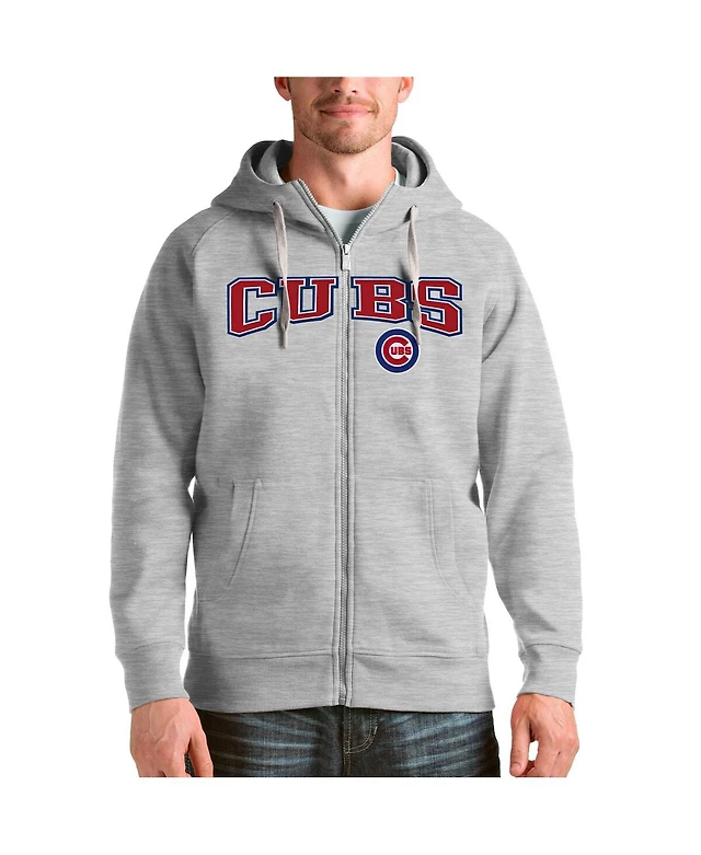 Antigua Men's Heather Gray Chicago Cubs Team Logo Victory Full-Zip Hoodie