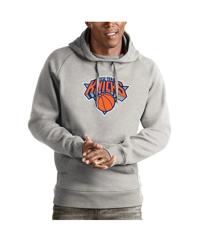 Antigua Men's Heather Gray New York Knicks Team Logo Victory Pullover Hoodie