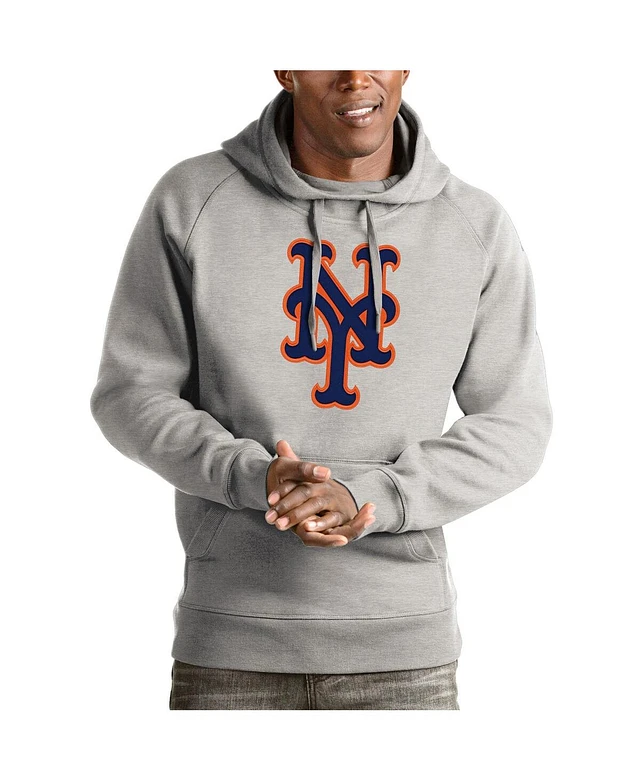 Antigua Men's Heathered Gray New York Mets Victory Pullover Hoodie