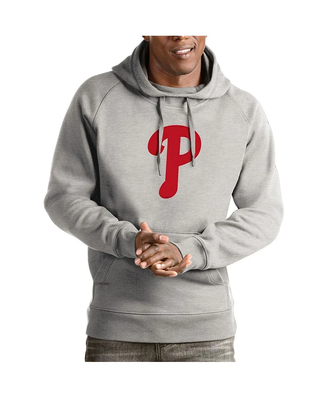 Antigua Men's Heathered Gray Philadelphia Phillies Victory Pullover Hoodie