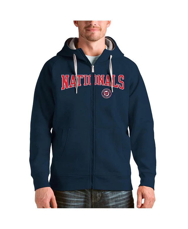 Antigua Men's Navy Washington Nationals Team Logo Victory Full-Zip Hoodie