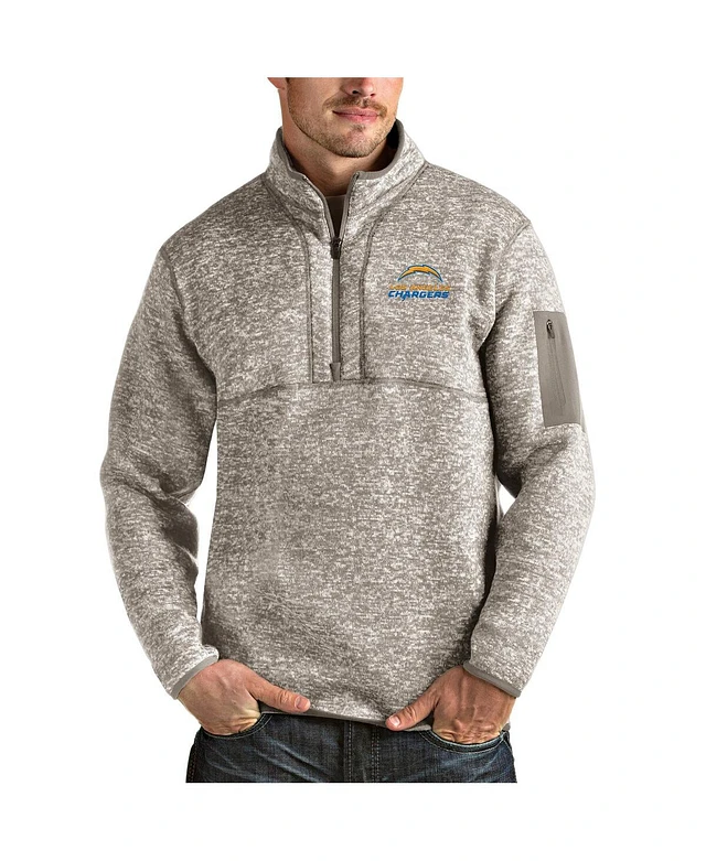 Antigua Men's Oatmeal Los Angeles Chargers Alternate Logo Fortune Quarter-Zip Pullover Jacket