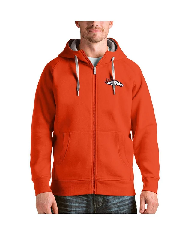 Antigua Men's Orange Denver Broncos Victory Full-Zip Hoodie