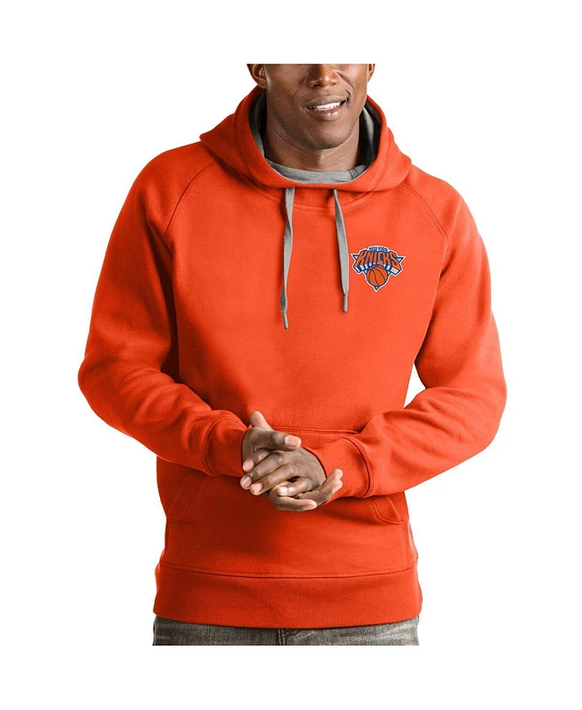 Antigua Men's Orange New York Knicks Team Logo Victory Pullover Hoodie