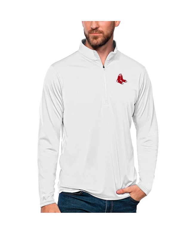 Antigua Men's White Boston Red Sox Tribute Quarter-Zip Pullover Top