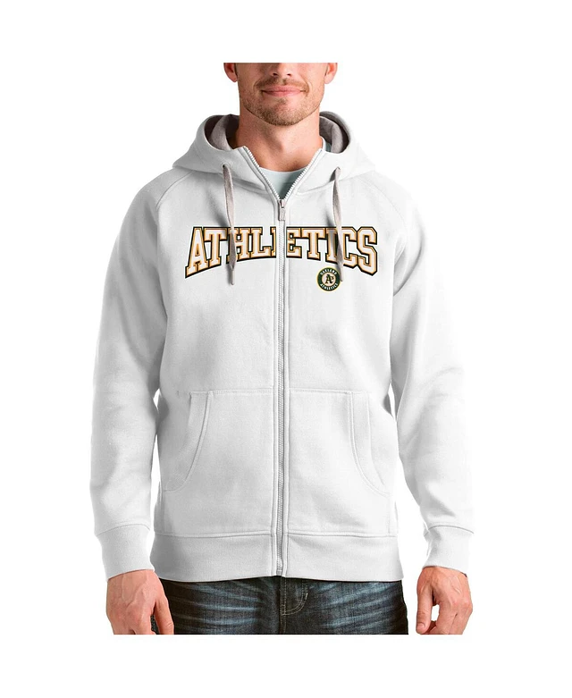 Antigua Men's White Oakland Athletics Team Logo Victory Full-Zip Hoodie