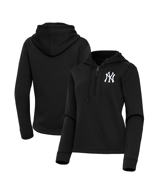 Antigua Women's Black New York Yankees Contemporary Quarter-Zip Hoodie