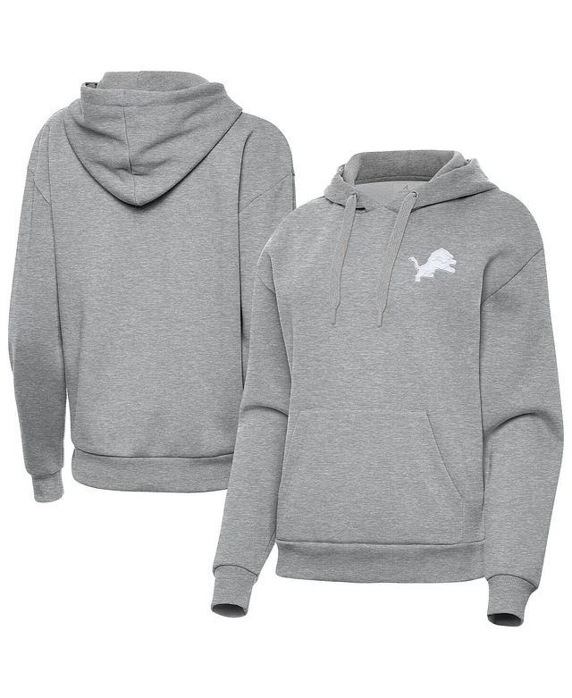 Antigua Women's Heather Gray Detroit Lions Victory Pullover Hoodie Sweatshirt