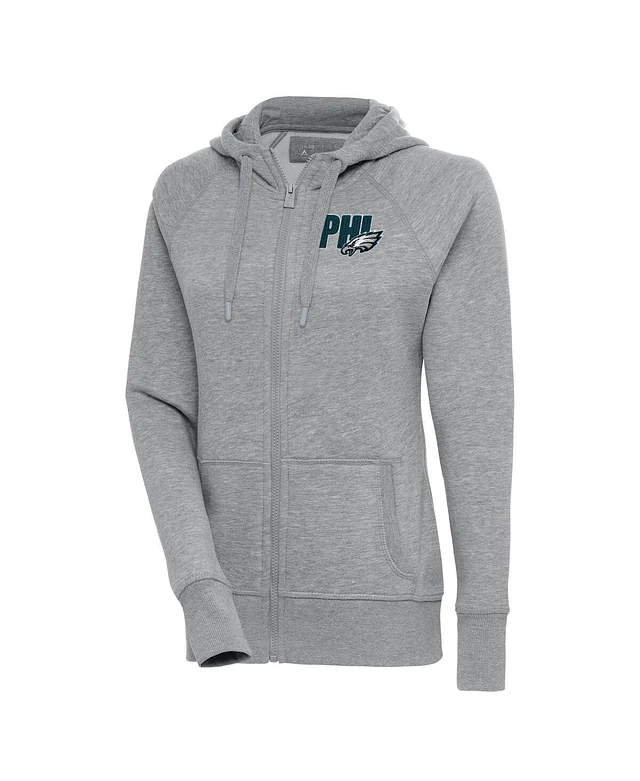 Antigua Women's Heather Gray Philadelphia Eagles Victory Full-Zip Hoodie