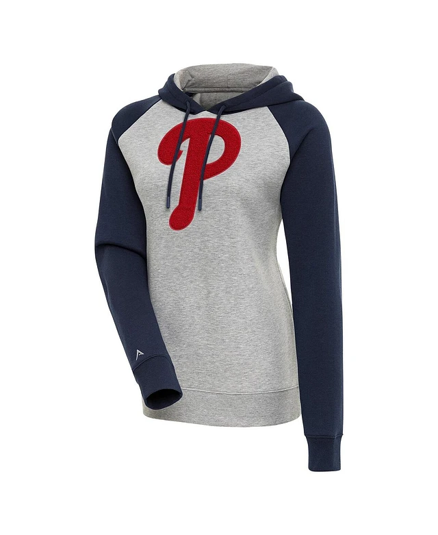 Antigua Women's Heather Gray/Navy Philadelphia Phillies Victory Raglan Sleeve Pullover Hoodie
