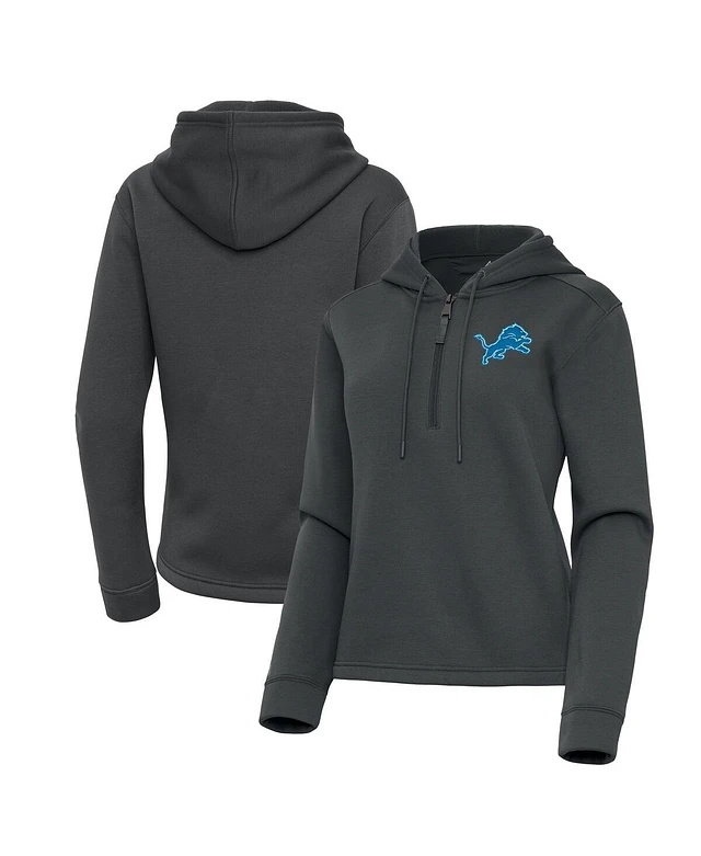 Antigua Women's Pewter Detroit Lions Contemporary Quarter-Zip Hoodie