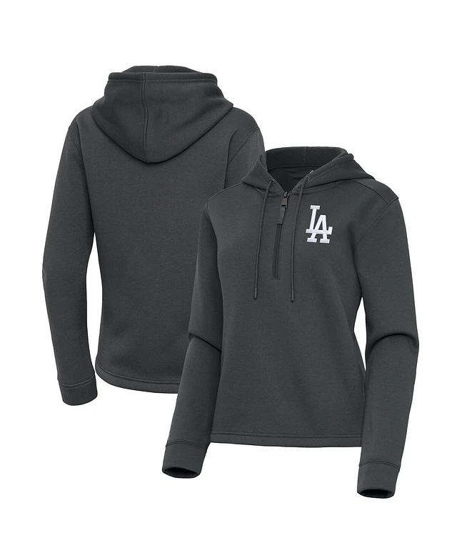 Antigua Women's Pewter Los Angeles Dodgers Contemporary Quarter-Zip Hoodie