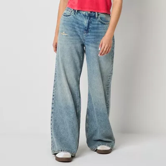 Arizona Airy Drape Womens Juniors Low Rise Ripped Baggy Fit Loose Fit Jean