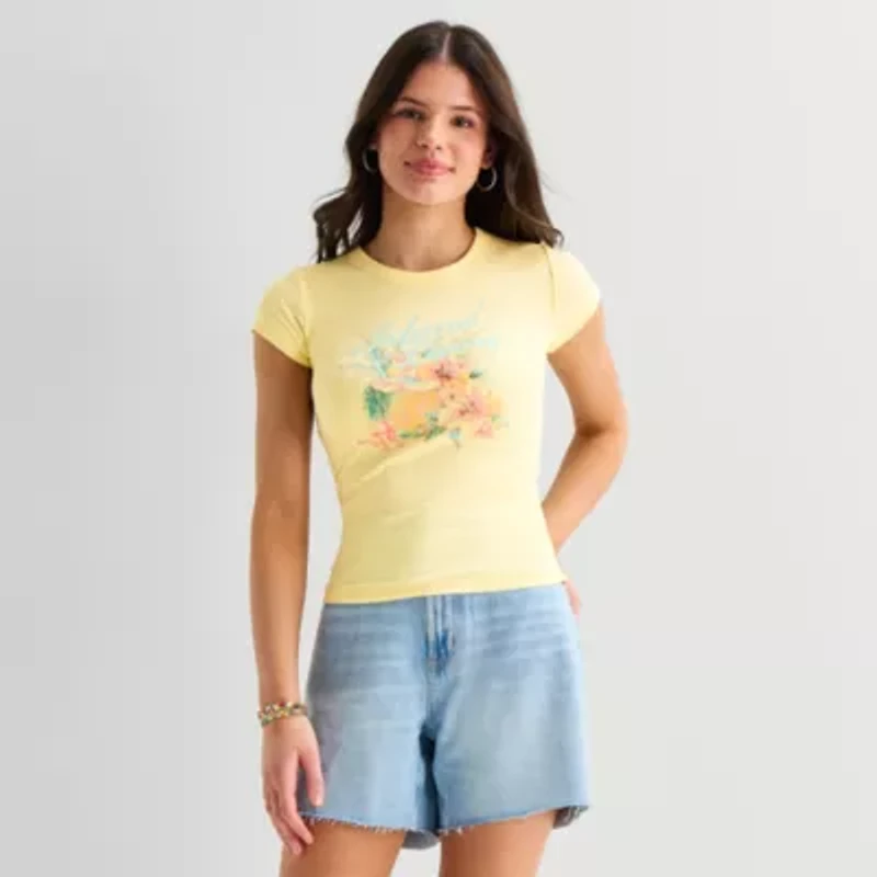 This Arizona women's and junior's baby tee is a cool casual wardrobe essential you can pair with everything from skirts to jeans or shorts. It's made from soft recycled cotton-rib with a hint of stretch and a fitted silhouette, a crew neck and short sleeves.