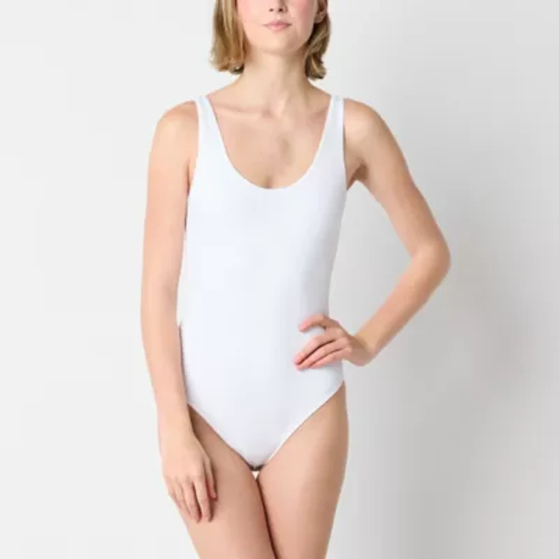 This Arizona Body women's and junior's bodysuit is a sleek styling piece you can layer with year-round. Made from a soft stretch-fabric, this sleeveless tank bodysuit has wide straps, a fitted silhouette and snap bottom closures. Wear it with jeans or a skirt.