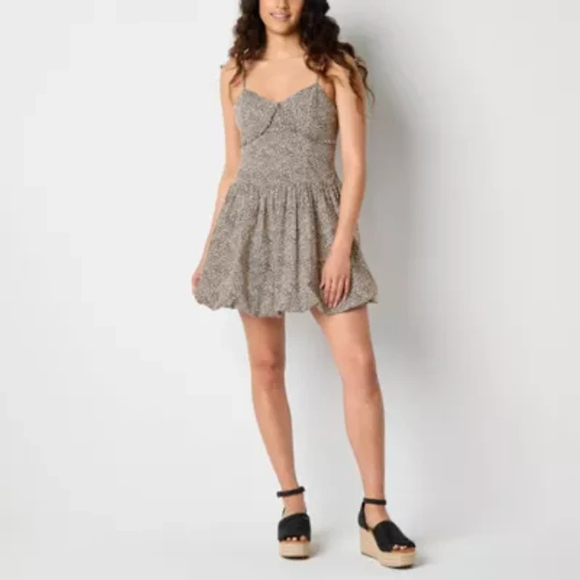Arizona Bubble Hem Womens Sleeveless Juniors Cheetah Babydoll Dress
