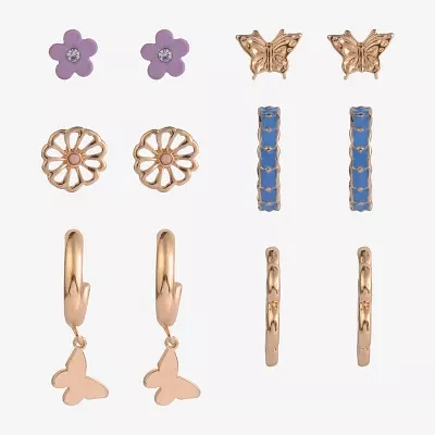 Arizona Gold Tone Stud Womens Butterfly Flower 9 Pair Earring Set