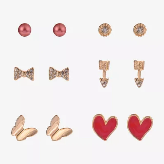 Arizona Gold Tone Womens Heart 6 Pair Earring Set