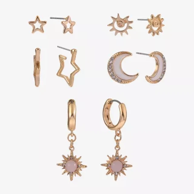 Arizona Gold Tone Womens Moon 6 Pair Earring Set