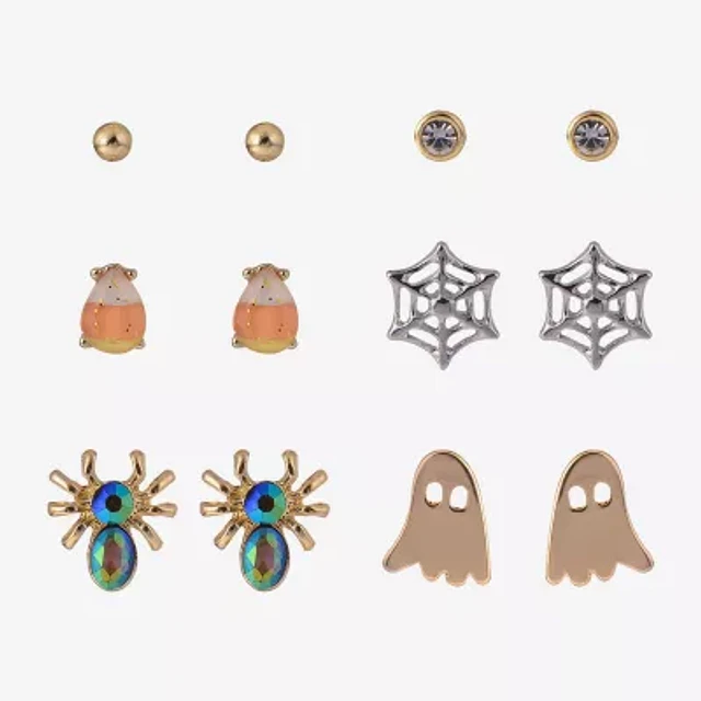 Arizona Halloween Gold Tone Womens Blue Glass 6 Pair Earring Set