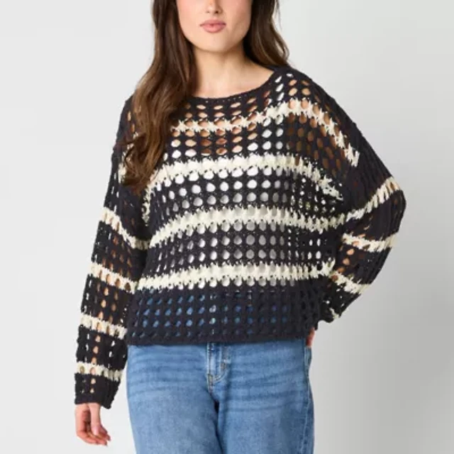 Arizona Juniors Womens Crew Neck Long Sleeve Striped Pullover Sweater