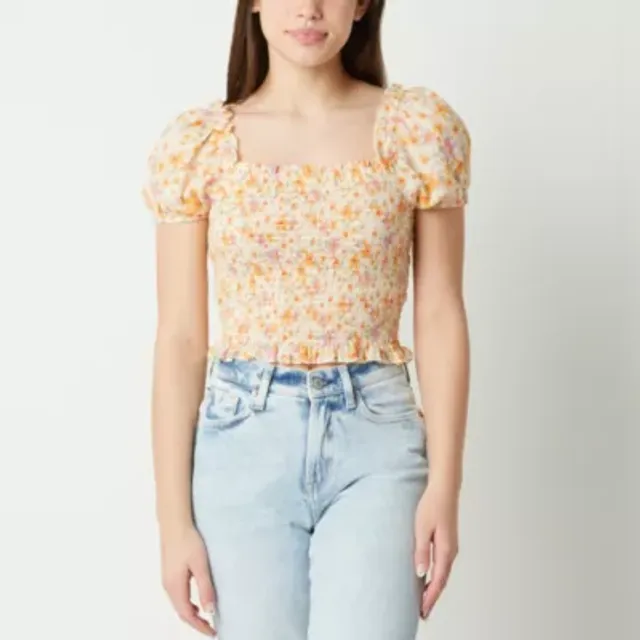 Arizona Juniors Womens Square Neck Short Sleeve Peasant Top