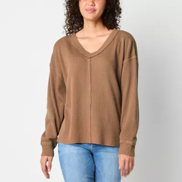 Arizona Juniors Womens V Neck Long Sleeve Thermal Top