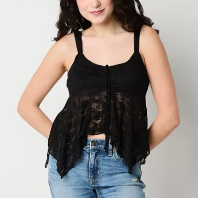 Arizona Lace Womens Juniors Sweetheart Neck Sleeveless Camisole