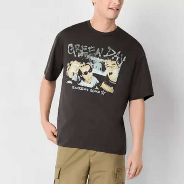 Arizona Mens Cropped Boxy Fit Short Sleeve Green Day Graphic T-Shirt