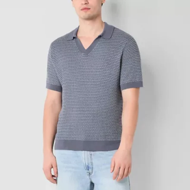 J. Ferrar Johnny Collar Mens Short Sleeve Button Polo Sweater