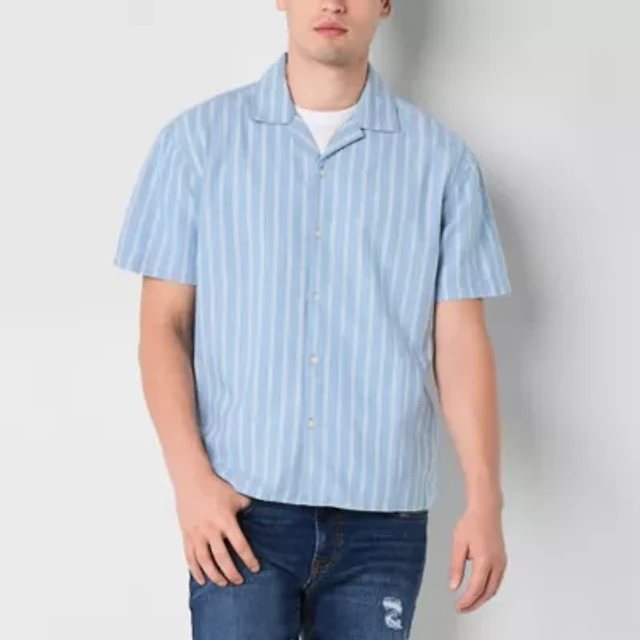 Arizona Mens Short Sleeve Striped Camp Shirt