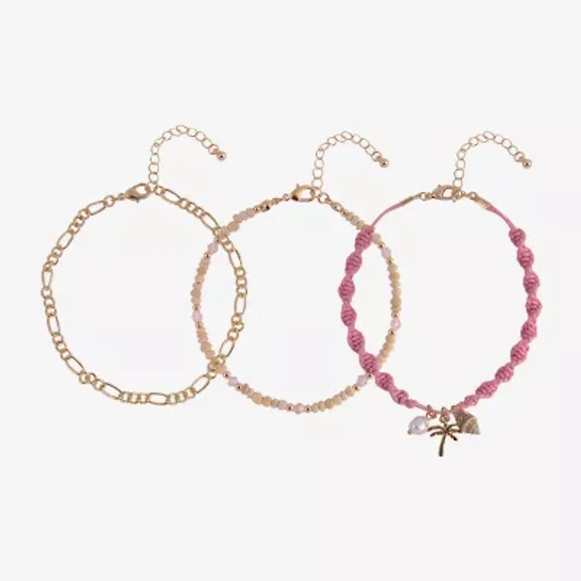 Arizona Pink Palm Tree & Shell Womens 9 Inch Figaro Flower Ankle Bracelet