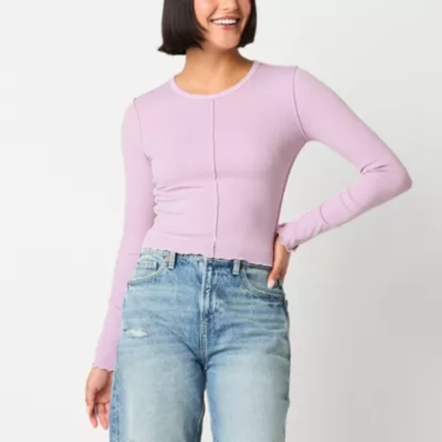 Arizona Womens Crew Neck Long Sleeve Juniors T-Shirt