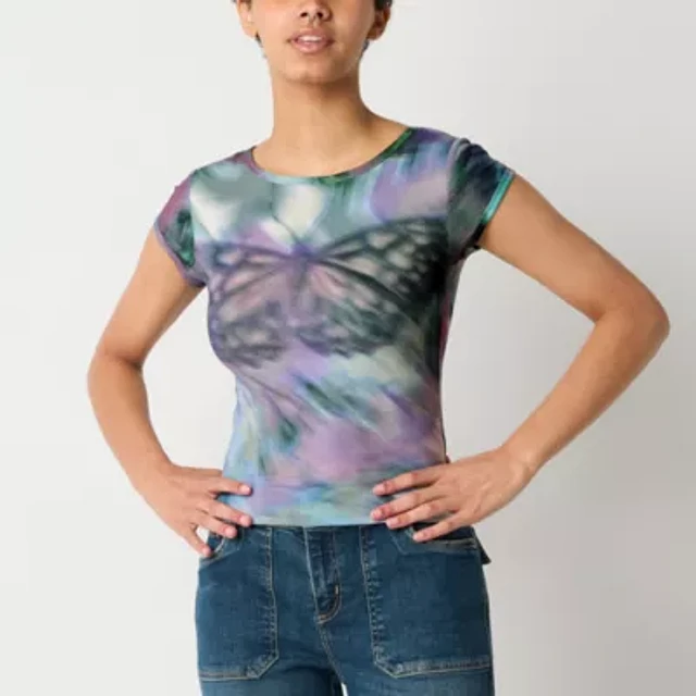 Arizona Womens Round Neck Short Sleeve Juniors T-Shirt