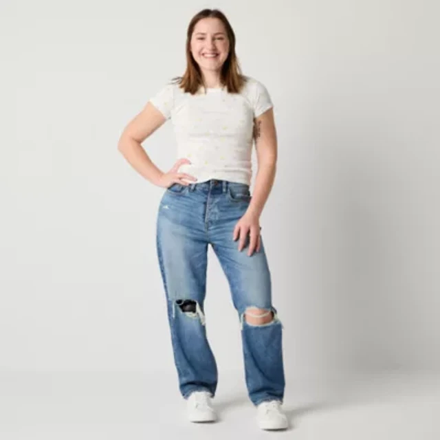 Arizona Womens Juniors Highest Rise Easy-on + Easy-off Straight Leg Jean