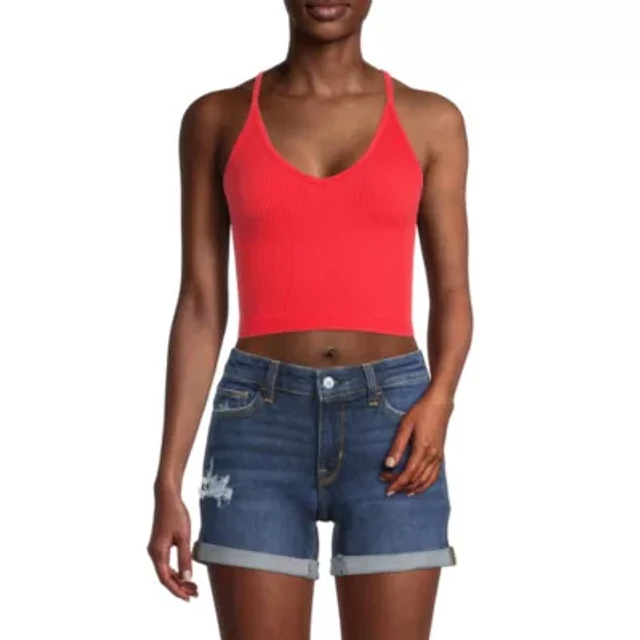 Arizona Womens Juniors V Neck Sleeveless Seamless Tank Top
