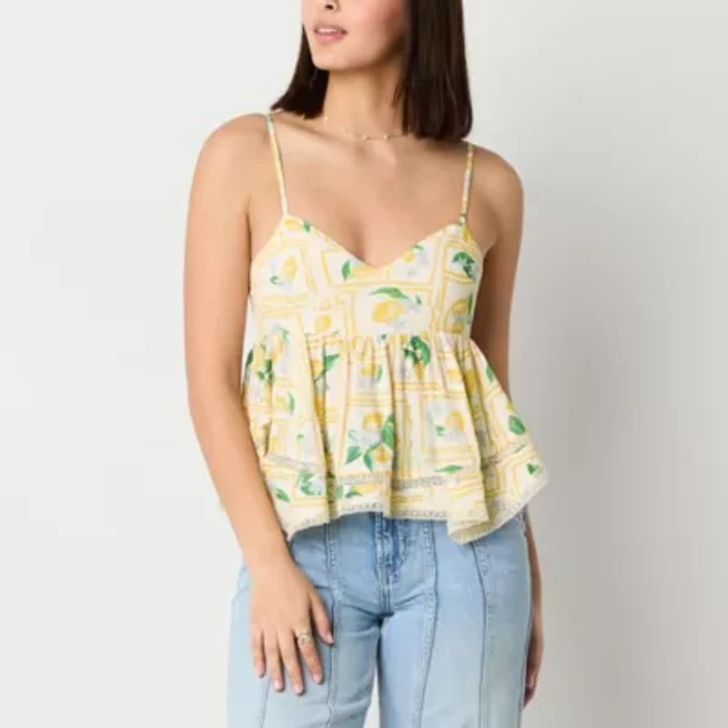 Add a playful touch to your outfit with this Arizona Jean Co. women's and juniors' tank top. Made from a woven crinkle fabric, it features a V-neckline, adjustable spaghetti straps, and a flowy silhouette with a lace-trim detail. Pair with jeans and sandals.