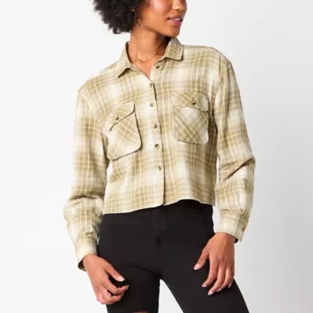 Arizona Womens Long Sleeve Regular Fit Juniors Flannel Shirt