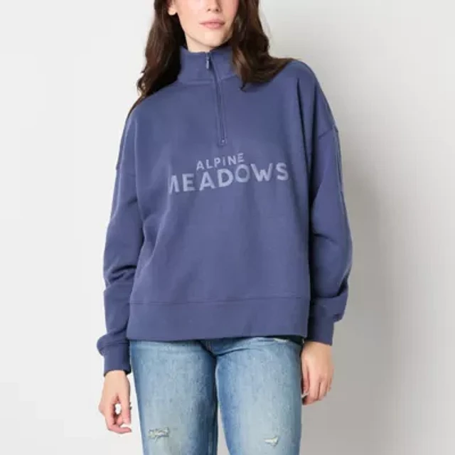 Arizona Womens Mock Neck Long Sleeve Juniors Quarter-Zip Pullover