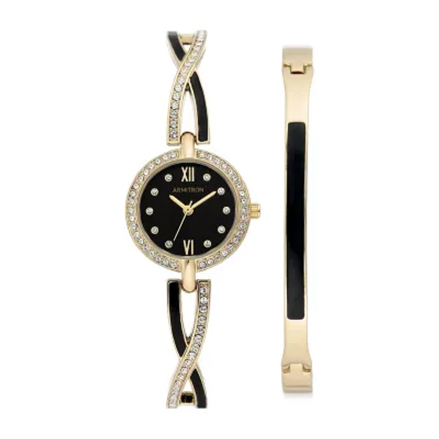 Armitron Womens Crystal Accent Gold Tone 2-pc. Watch Boxed Set 75/5720bkgpst