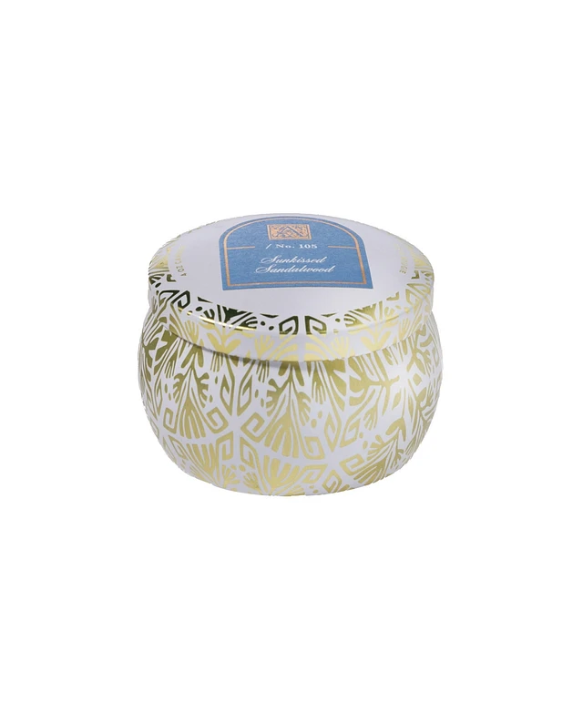 Aromatique Sunkissed Sandalwood Printed Tin Candle with Lid, 4 oz.