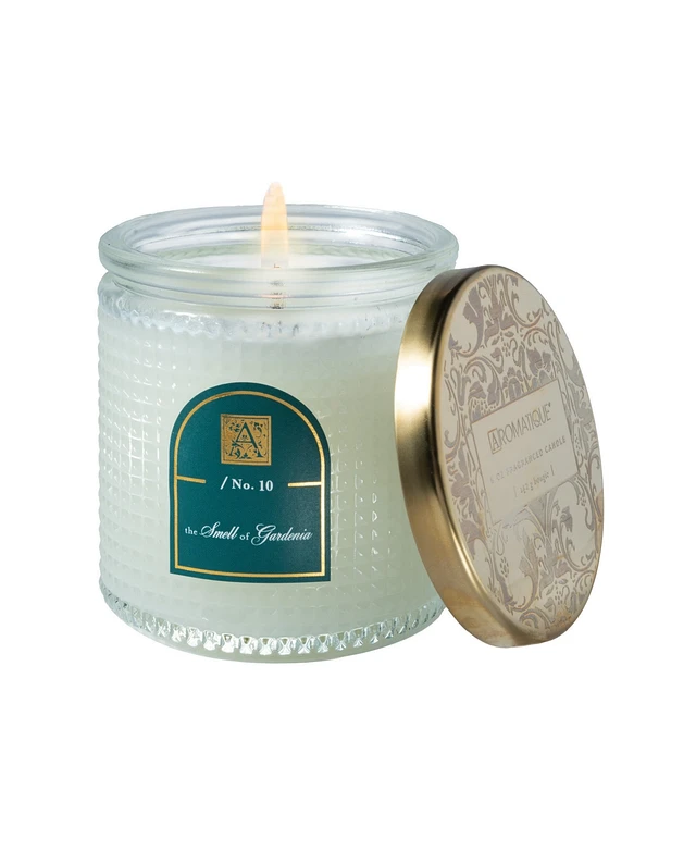 Aromatique The Smell of Gardenia Textured Glass Candle with Lid, 6 oz.