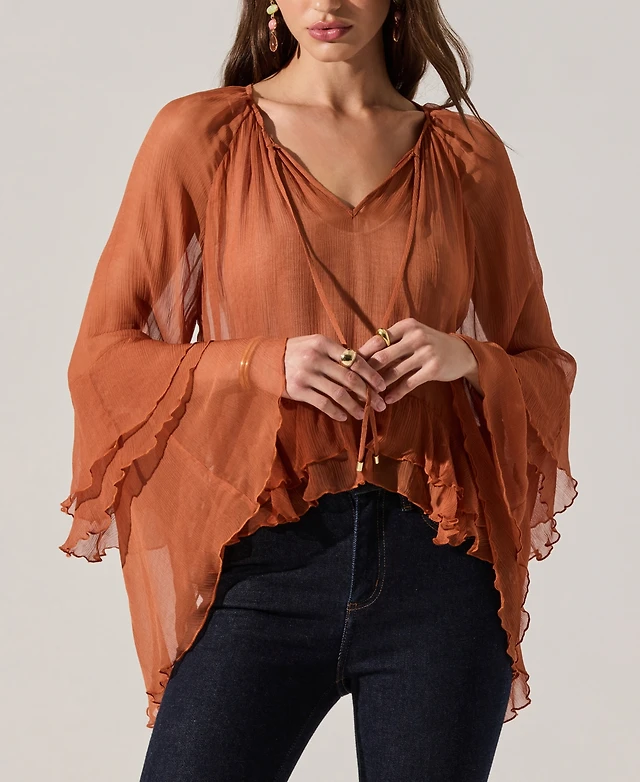 Astr the Label Women's Collar Neck Long-Sleeve Top