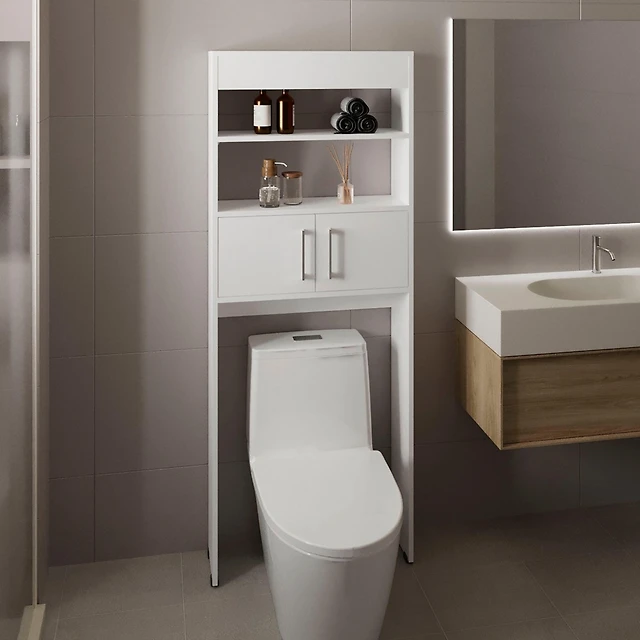 Fm Furniture Bisbee 2-Door Over-the-Toilet Bathroom Storage Cabinet Shelf, White