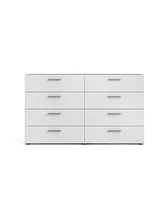 Austin 8 drawer double dresser can organize your clothing without overbearing your room. With 8 wide drawers, sweaters and linens find a happy home here. Unique dresser depth makes this ideal for smaller spaces or high traffic areas in bedrooms.